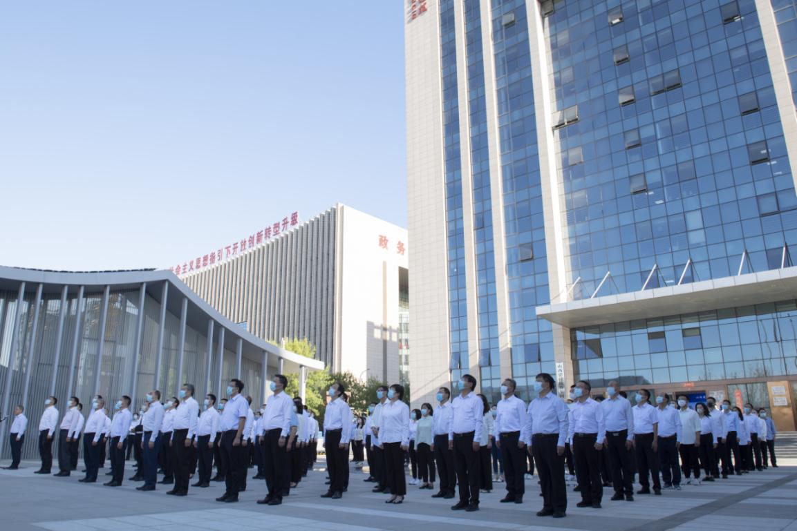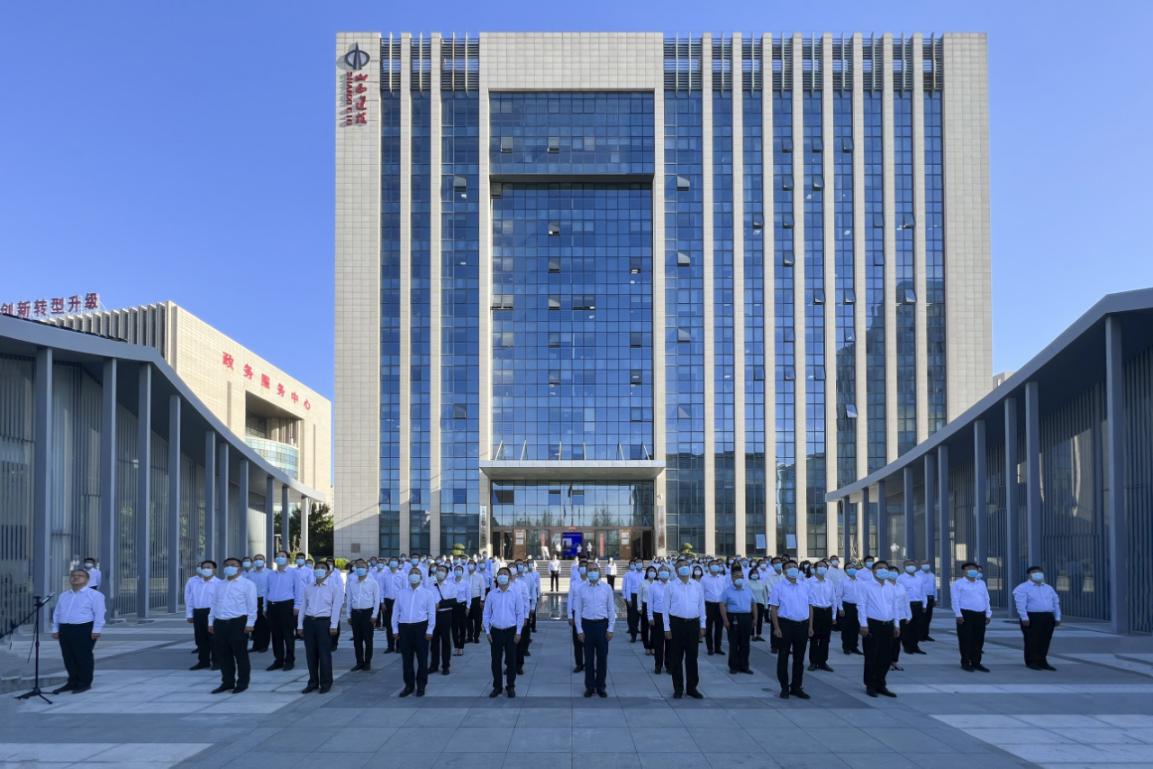 9月1日清早,建投集团总部在智慧绿建广场举行首次升国旗仪式,集团向导和总部全体职员加入。