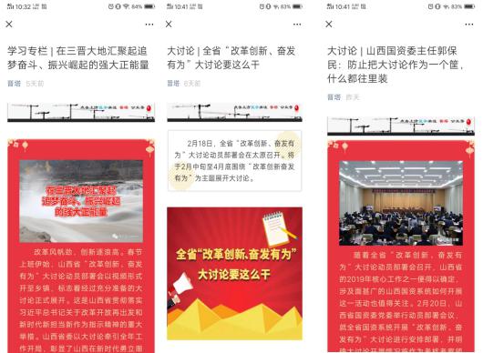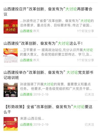 山西建投国际公司4个下层单位、6个党支部接到通知之后迅速响应,通过微信公众号、宣传展板、电子屏、悬挂条幅等方法普遍宣传大讨论运动,回声热烈,效果优异。