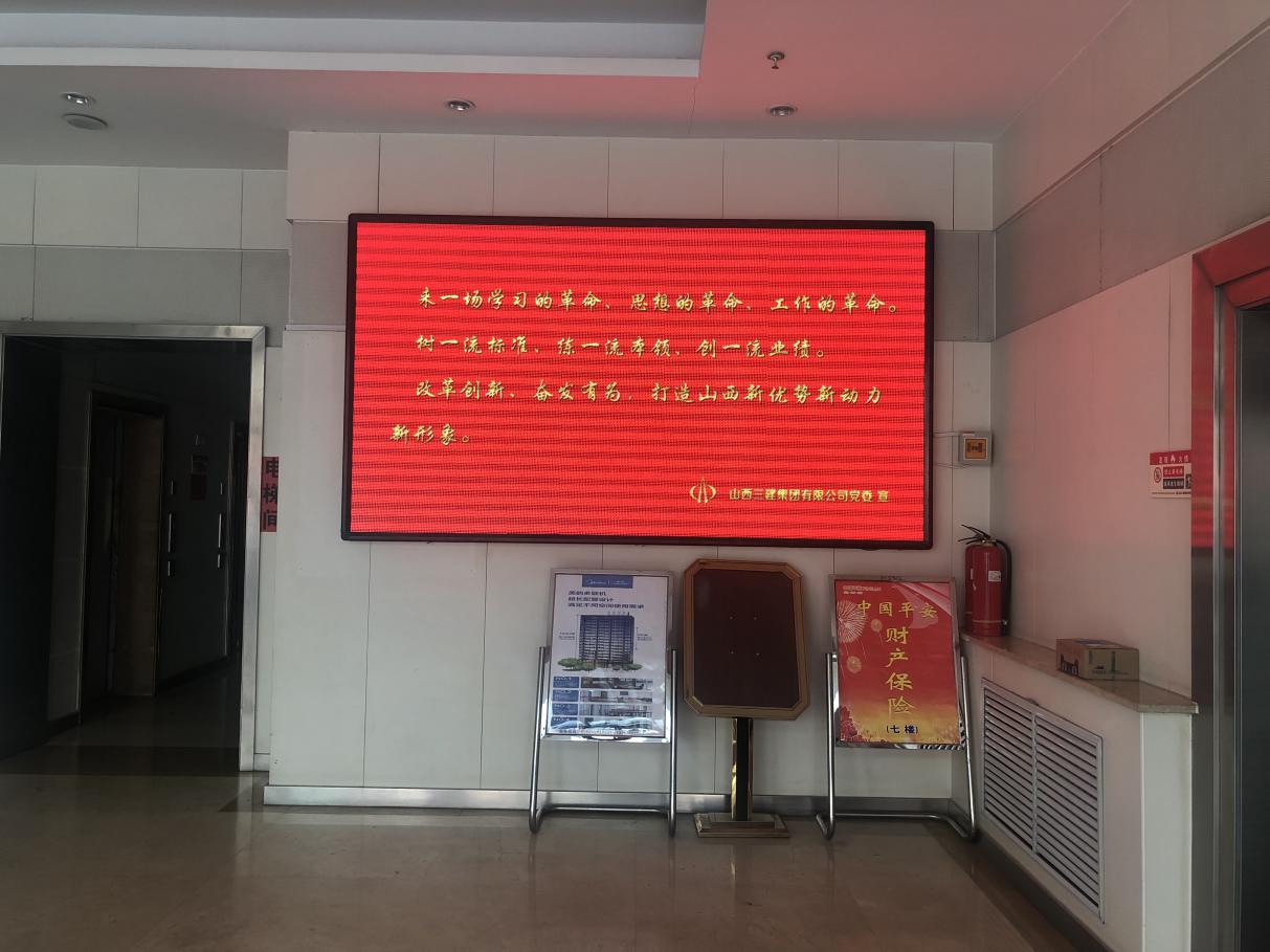 山西建投二建集团做到33个党(总)支部全笼罩,公司机关大厅LED液晶显示屏、王家峰集中办公区现场、桥东街集中办公区也做好刊播张挂,普遍张挂刊播宣传口号160余条。