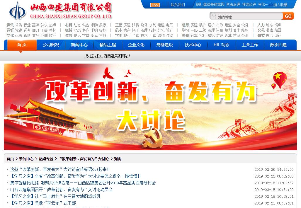 山西建投四建集团在公司四个办公区的LED显示屏转动播放宣传口号,在公司微信公众号、网站设置专栏刊播,呼吁员工起劲学习加入,阻止现在张挂宣传条幅32条、刊播宣传语笼罩53个单位、43个党支部。