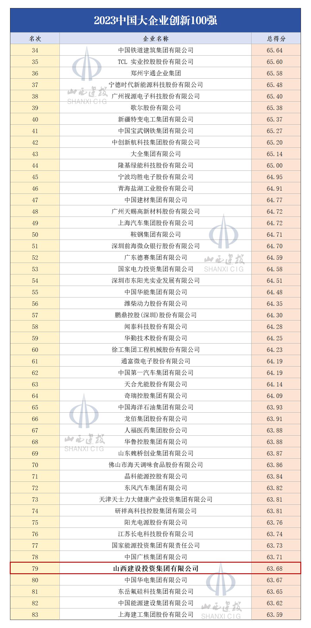 山西建投集团以1360.39亿元的营业收入位列“2023中国企业500强”第193位,较去年提升22位。同时,以63.68的总得分位列“2023中国大企业立异100强”第79位,较去年提升15位,集团综合实力和科技立异竞争力一连增强,企业焦点竞争力进一步凸显,坚持了高质量生长的优异态势。