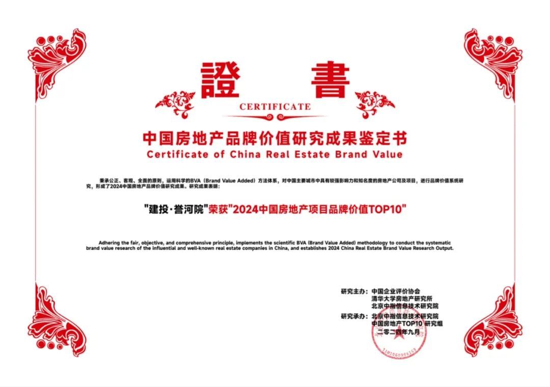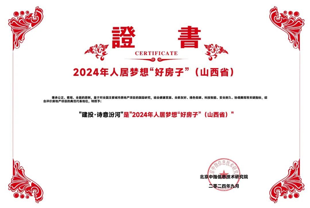9月13日,由中国企业评价协会等单位团结承办的“2024中国房地产品牌价值研究效果宣布会”在雄安新区召开,山西建投集团建投地产荣膺“2024中国房地产公司品牌价值TOP10(国企)”“2024中国房地产公司品牌价值TOP30”,建投地产打造的建投·誉河院项目荣获“2024房地产项目品牌价值T0P10”声誉,建投·诗意汾河项目获评“2024年人居梦想‘好屋子’”,成为高品质人居的规范代表。