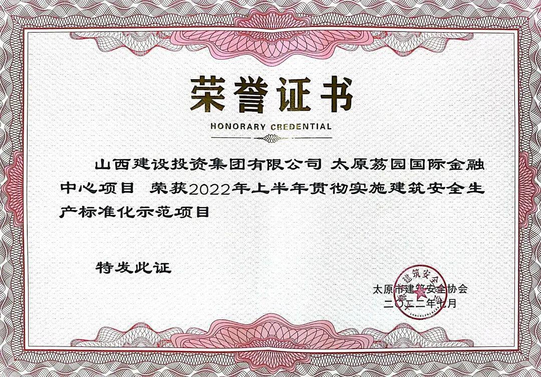 7月25日 ,中国清静工业协会修建行业分会传来喜报 ,在2022年中国清静工业修建行业清静生产标准化评选中 ,由山西建投总承包公司承建的建投·紫宸府一期T22地块、二期T24地块及太原国投信息工业立异园项目一期共计2个项目榜上著名 ,荣获2022年上半年中国清静工业修建行业清静生产标准化项目声誉称呼。