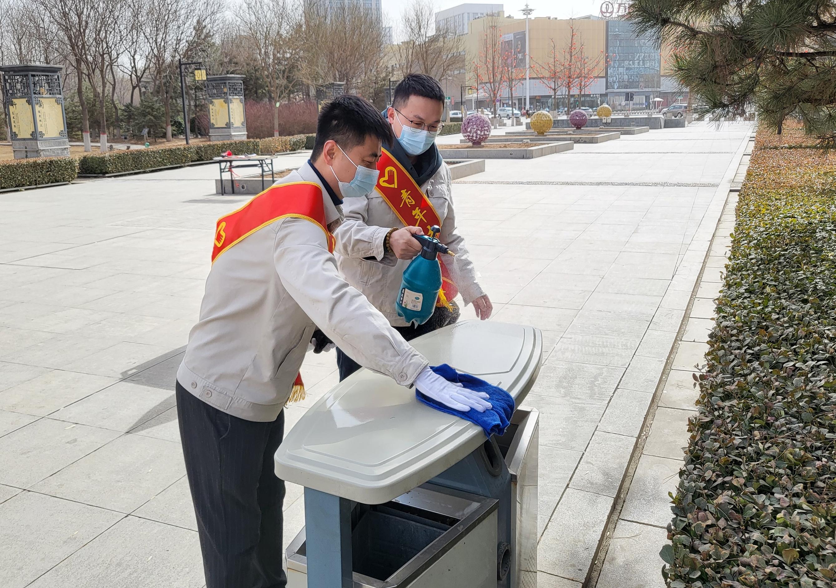 3月4日,公司20余名自愿者来到了榆次区晋商公园,重温了雷锋日志精选片断。随后,在做好自身防护的条件下,在公园内捡拾垃圾并给垃圾桶、长椅等举行了消毒。