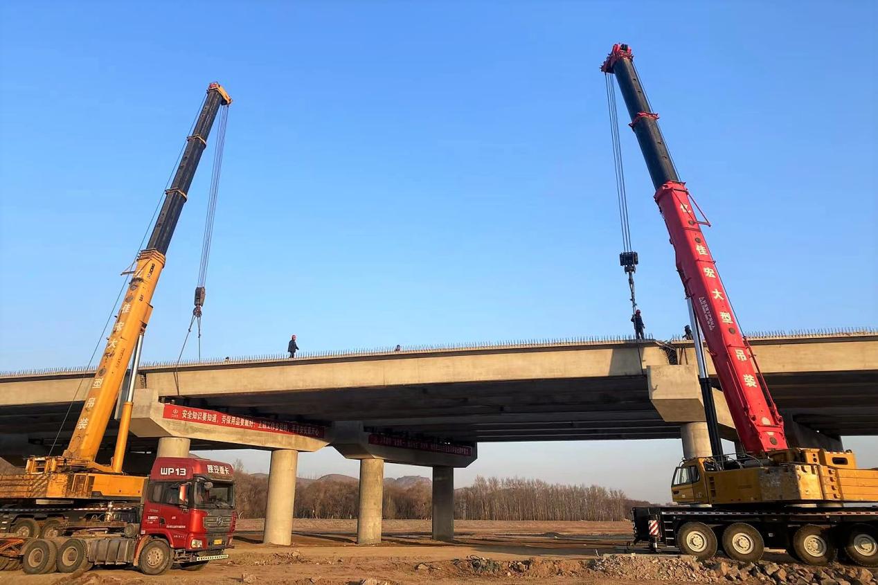 克日,公司承建的忻原大道旅游蹊径忻府区段工程项目滹沱河大桥80片预制箱梁顺遂完成吊装,整体施工进度取得阶段性胜利。