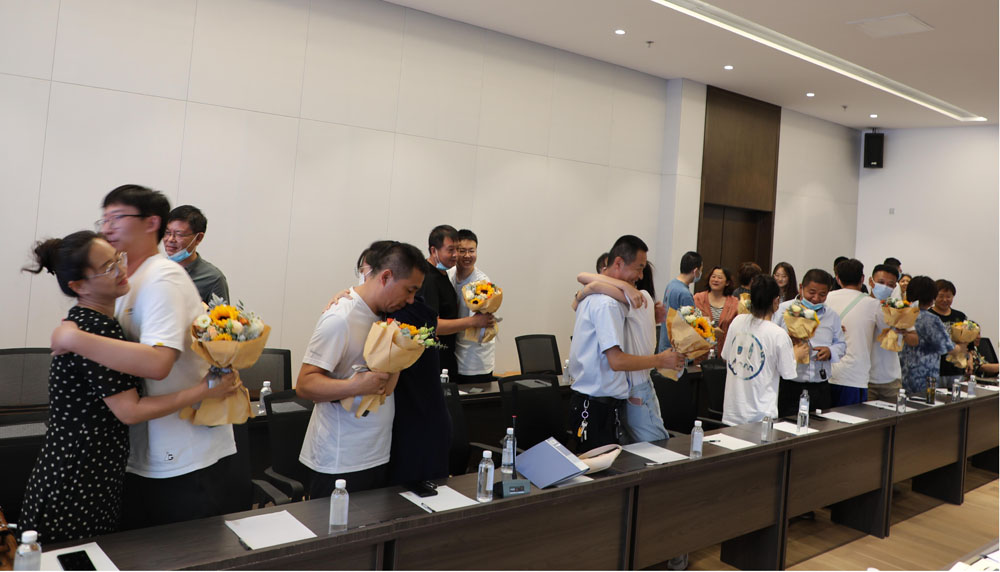 公司还特殊设计了向怙恃献一束鲜花、给一个拥抱环节,让职工子女用行动表达对怙恃的爱,表达谢谢怙恃养育教育之恩,让亲情在心与心之间流淌。