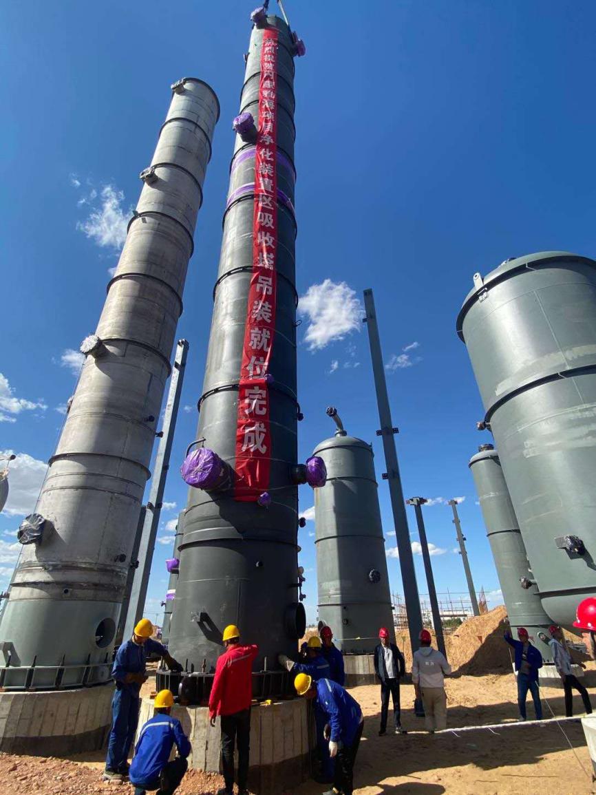 克日,公司承建的内蒙古雅海LNG项目801A净化妆置区吸收塔吊装一次乐成。