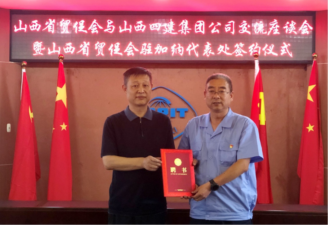 7月30日,公司与山西省贸促会举行交流座谈会暨驻加纳代表处签约仪式,山西省贸促会副会长李秀生、公司外洋事业部总司理杨军伟出席。