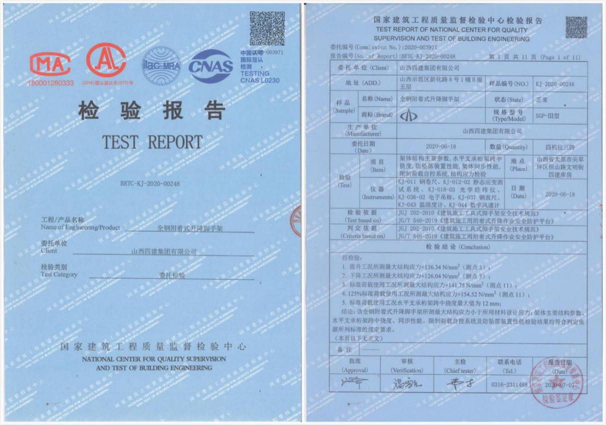 ¿ËÈÕ£¬¹ú¼ÒÐÞ½¨¹¤³ÌÖÊÁ¿¼àÊÓÄ¥Á·ÖÐÐĶԹ«Ë¾Ä£¼Ü¿Æ¼¼·Ö¹«Ë¾×îÐÂÑз¢µÄSGP-IIIÐÍÈ«¸Ö¸½×ÅʽÉý½µ½ÅÊּܾÙÐÐÐÔÄܼì²â¡£Í¨¹ýΪÆÚÁ½ÌìµÄ·À׹ʵÑé¡¢ºÉÔØÊµÑé¡¢³¬ÔØÊµÑ飬¸÷ÏîÊý¾Ý¾ùÇкϱê×¼¡£¹ú¼ÒÐÞ½¨¹¤³ÌÖÊÁ¿¼àÊÓÄ¥Á·ÖÐÐÄÖ÷ÈÎÍõ·å¶Ô¹«Ë¾×ÔÖ÷Ñз¢µÄ³ûӥʽ·À×¹Æ÷µÄ·À×¹¹¦Ð§¸øÓèÁ˳ä·ÖÒ»¶¨£¬SGP-IIIÐÍÈ«¸Ö¸½×ÅʽÉý½µ½ÅÊÖ¼Ü˳Ëìͨ¹ýÑéÊÕ¡£
