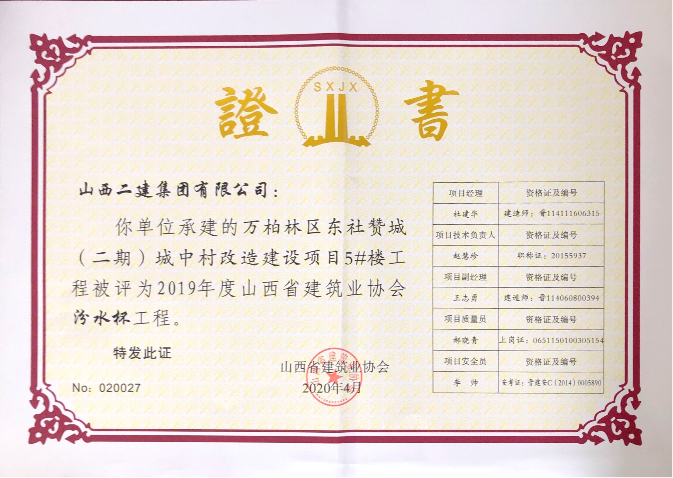 克日,山西省修建业协会宣布2019年度山西省修建业协会“汾水杯”工程评价名单,由公司承建的5项工程荣获“汾水杯”工程。这是公司首次统一年度获得5项“汾水杯”,同时也是2019年度山西省获得该声誉最多的企业。