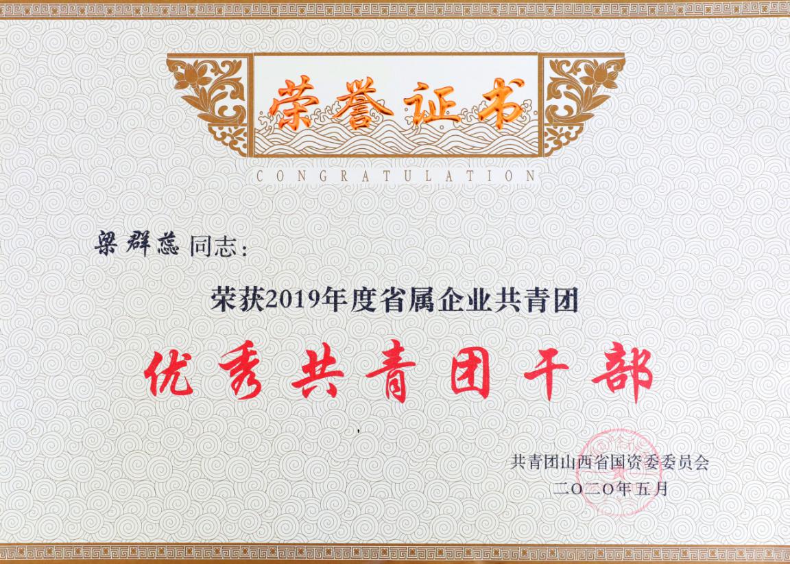 5月19日,公司捧回2019年度省属企业“五四红旗团委”“优异共青团干部”两项大奖,本次表扬不但是对公司青年岁情的充分一定与认可,同时也对推动下一步青年岁情具有主要意义。