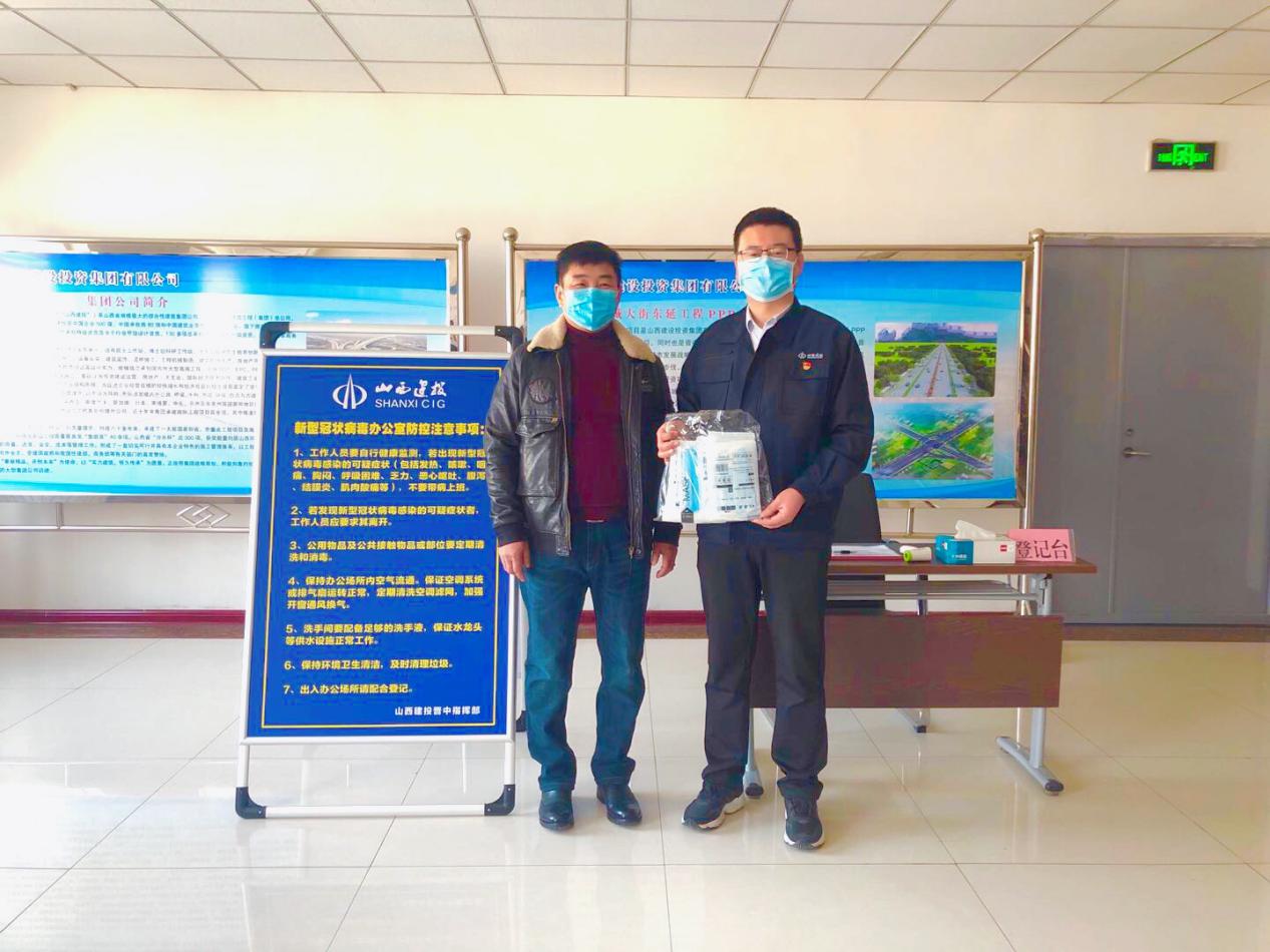 2月19日,山西省晨辉商品混凝土配送有限公司副总司理程军来到山西建投晋中指挥部,向一线项目职员捐赠了100个医用外科口罩。指挥部总会计师张美旺代表晋中指挥部接受捐赠并向爱心企业体现谢谢。