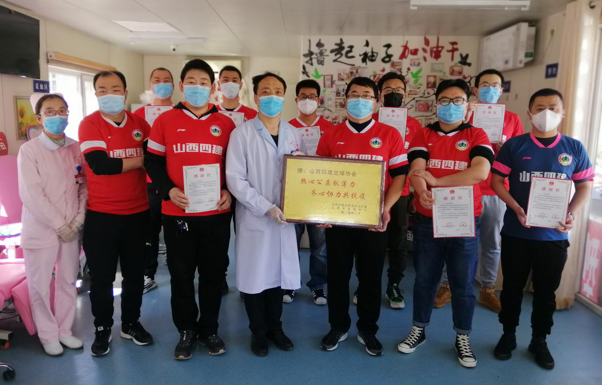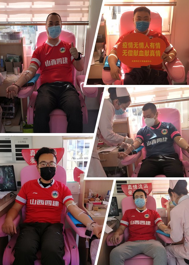 为支持无偿献血事业,缓解目今血液供应趋紧状态,3月22日,山西建投四建集团足球协会11名热血青年们加入了“抗疫情献热血”运动,累计献血4400cc,用现实验动尽自己的微薄之力,为早日打赢疫情阻击战助力。