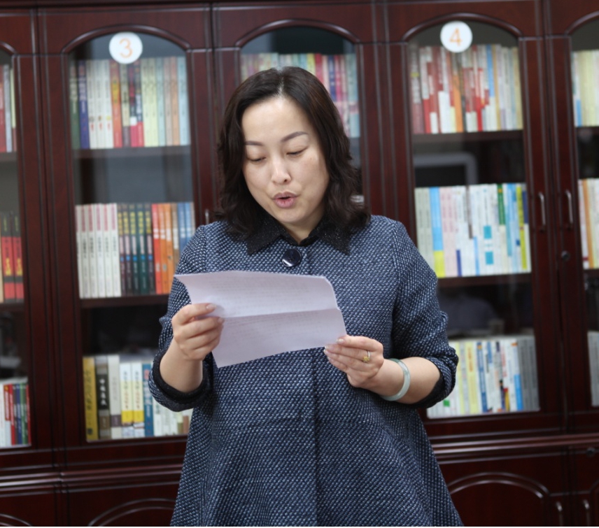 孙亚宁为各人带来了乔瑞玲的《董卿——做一个有才情的女子》,念书让人学会思索,让人能够平静下来,享受一种灵魂深处的愉悦,要像董卿一样多念书,读好书,充分自我,做一个有才情的女子。