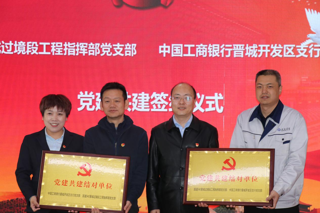 3月21日,山西建投国道G342晋都会过境段改线工程项目指挥部与中国工商银行晋城开发区支行举行党建共建协议签约仪式,项目总指挥邢六斤、工行晋城分行行长王军出席。项目指挥部党支部书记张兵、工行晋城开发区支行党支部书记王敏丽代表双方签字。