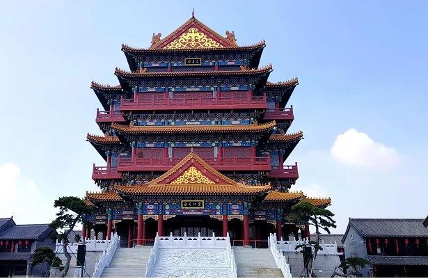 文昌阁是莒国古城项目施工难度较高的三大标记性修建之一,为明清气概的四层十字歇山顶楼阁式修建,前后出抱厦,黄色琉璃瓦屋面,混凝土框剪结构,修建平面为异形,二层面阔7间,进深9间,总修建面积3886.472平方米,总修建高度39.395米。