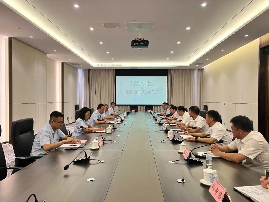 克日,山西建投二建集团与济南民生实业有限公司战略相助协议签约仪式在济南钢都大厦举行。济南民生实业总司理王洪翔,二建集团党委副书记、副董事长、总司理胡孟师出席仪式。