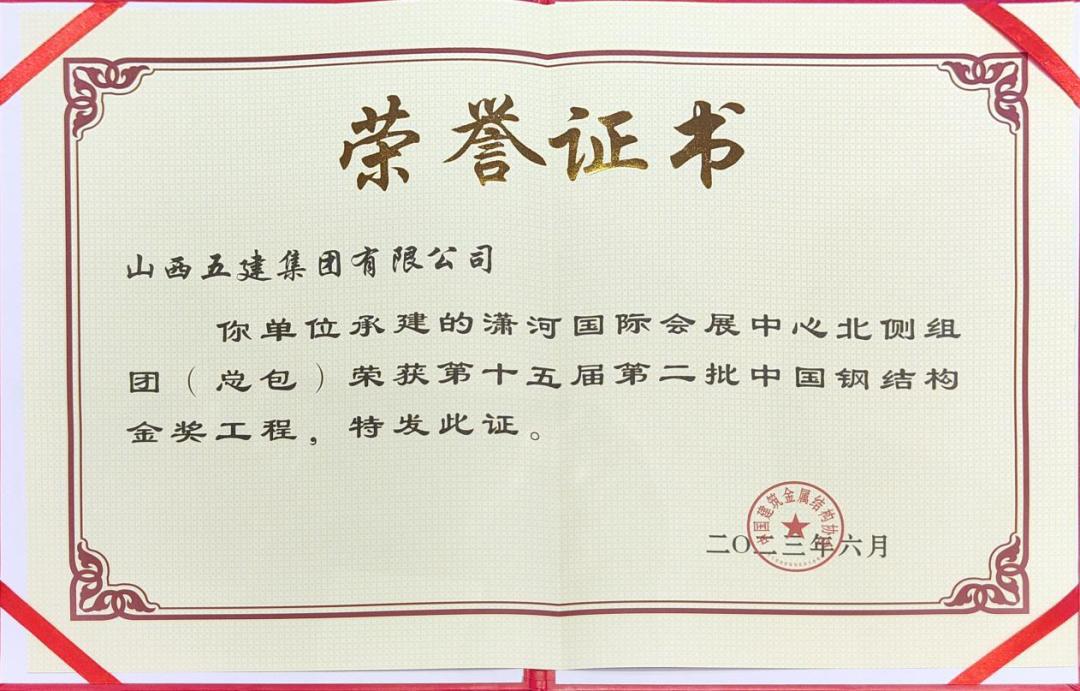 日前,在上海召开的天下修建钢结构行业大会上,山西建投五建集团承建的潇河国际会展中心北侧组团项目获“中国钢结构金奖”。