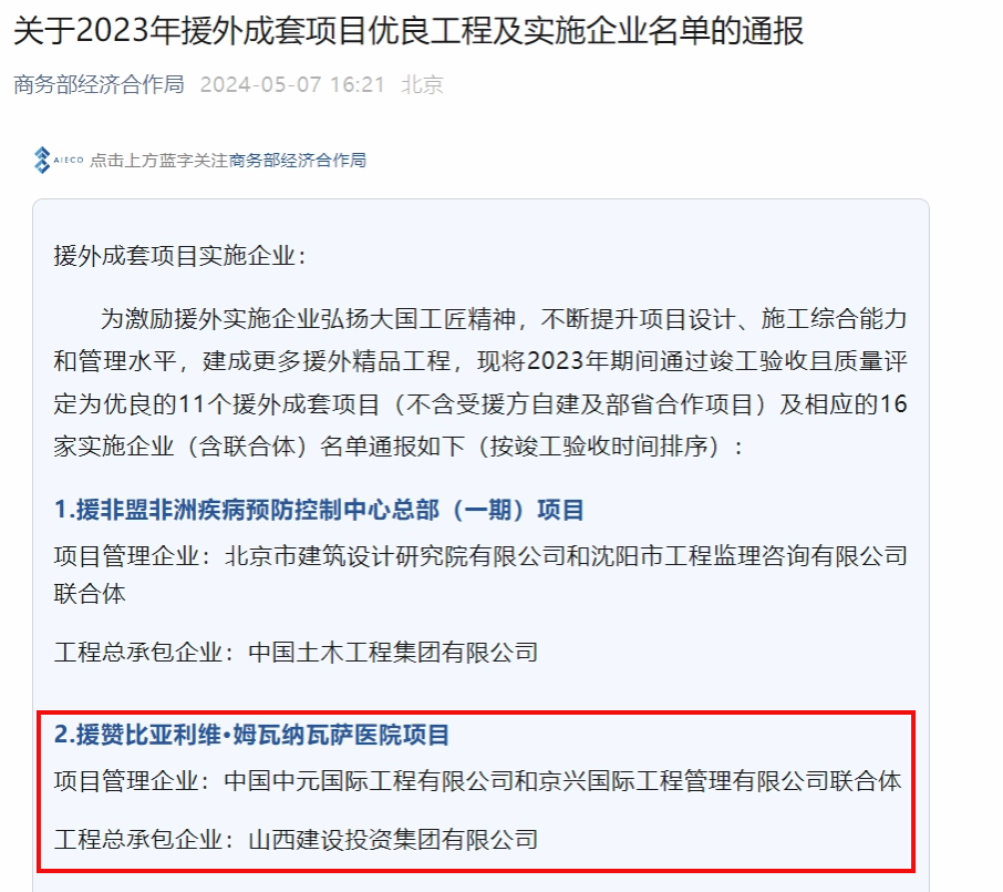 克日,商务部国际经济相助事务局宣布2023年援外成套项目优良工程及实验企业转达表扬名单。由山西建投国际GGPoker集团实验的援赞比亚利维·姆瓦纳瓦萨医院项目,被商务部授予“援外成套项目优良工程”。