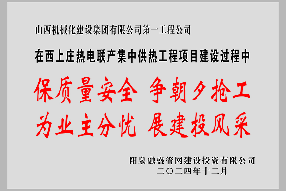 克日 ,山西建投契械化集团承建的阳泉西上庄低热值煤发电项目热电联产集中供热工程项目受到业主表扬。