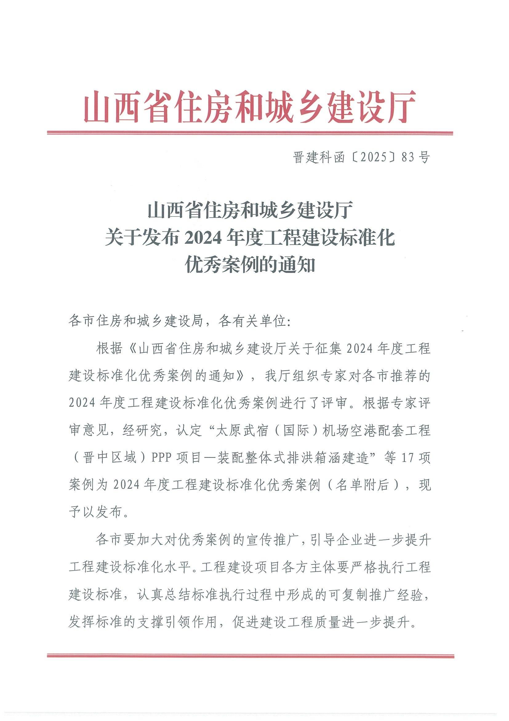 克日,山西省住房和城乡GGPoker厅宣布17项2024年度工程GGPoker标准化优异案例,山西建投八建集团报送的案例《翔恒·湖锦江南5#、7#、8#、9#楼及地库工程》入选。