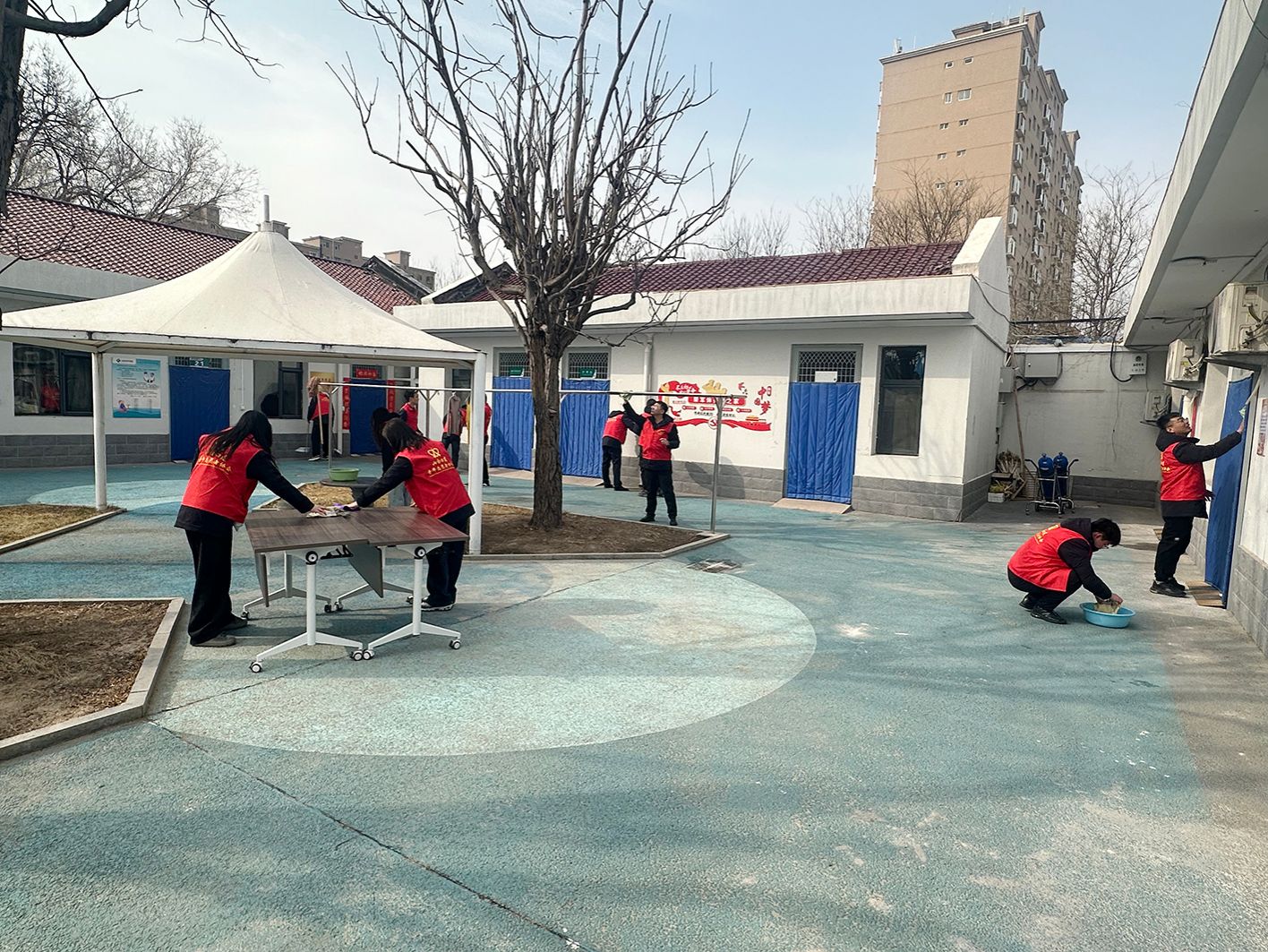 Ëæºó£¬×ÔÔ¸ÕßÃÇÃ÷È··Ö¹¤£¬Ä¬ÆõÅäºÏ£¬Í¶Èëµ½Ö÷ÒªµÄÎÀÉúÕûÀíÊÂÇéÖС£ÁÏÀíÔÓÎɨµØÍϵء¢ÕûÀí´²ÆÌ¡¢²ÁÏ´²£Á§£¬¸÷È˾«Éñ±¥Âú£¬¾¢Í·Ê®×㣬¶ÔÔºÄÚ¼°·¿¼ä¸÷½ÇÂä¾ÙÐÐÏ꾡ɨ³ýÕûÀí£¬ÎªÎäʿͬ־ÃÇÓªÔìÁËÕûÆëÌñ¾²µÄÉúÑÄÇéÐΡ£