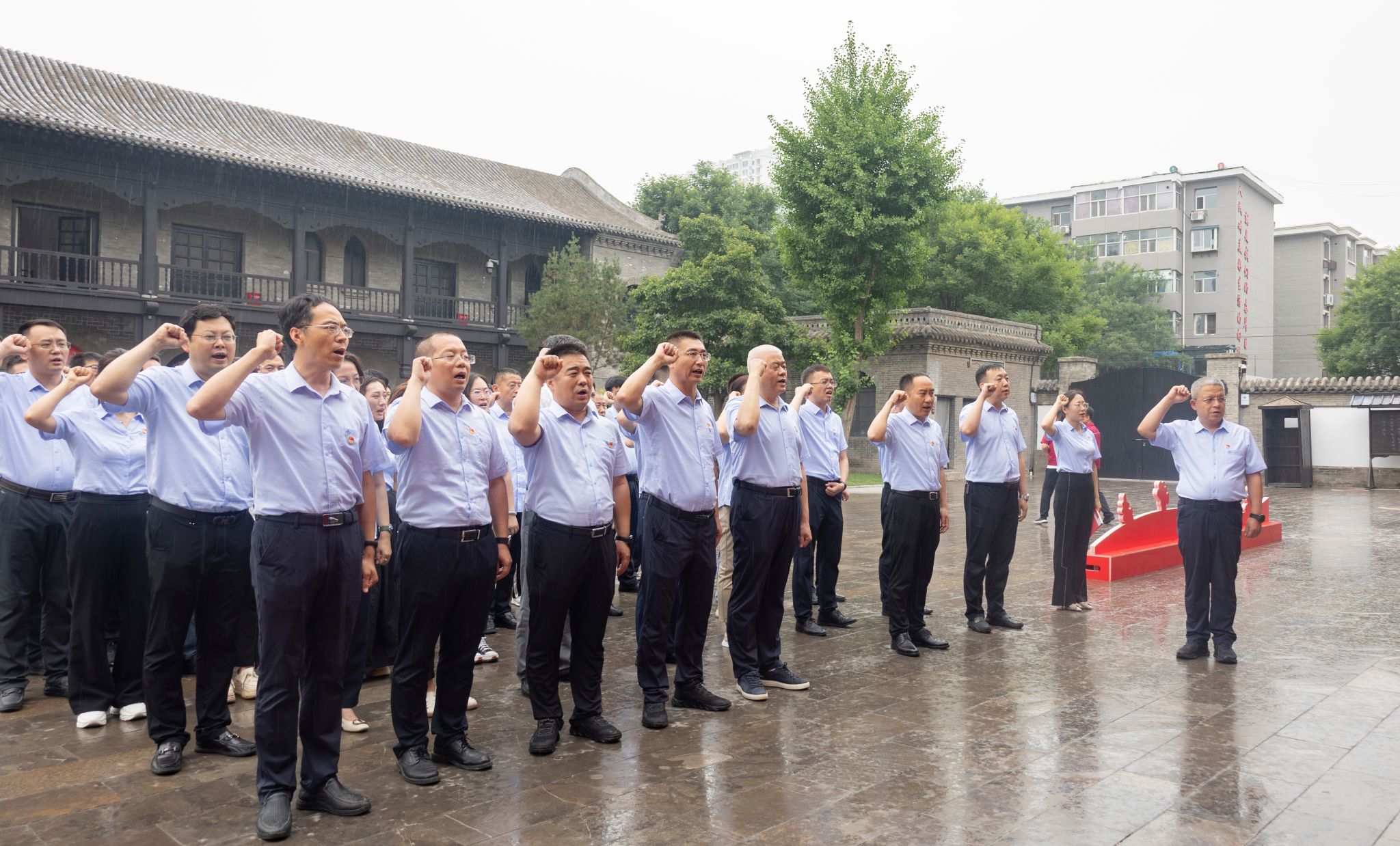 7月5日,山西建投集团机关党委组织总部党员赴山西国民师范旧址革运气动纪念馆开展“学习革命先驱精神 激励党员奋进实力”主题党日运动,党委专职副书记、副董事长、工会主席、机关党委书记乔建峰,总会计师白平彦加入运动。