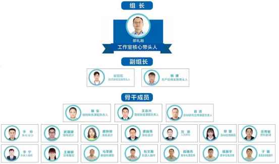 事情室以中国钢结构协会、中国修建金属结构协会专家、公司总工程师郑礼刚命名,团队平均年岁31岁,研究生占比达42%,形成了一支包括深化设计、生产工艺、质量治理、BIM手艺应用、检测试验、设计研发的手艺团队,涵盖研发、设计、制造、施工、检测装配式钢结构全工业链人才。